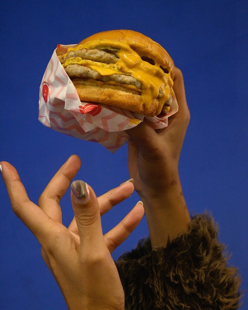 Then there’s the undisputed favourite, the Smash Lamb. Built with two juicy lamb patties smashed thin and stacked with double cheese, this burger hits all the right notes. Glossed with chili-oil mayo inside a buttered brioche bun, and finished with crisp pickles for contrast, it’s where savoury depth, heat, and crunch come together in perfect harmony.