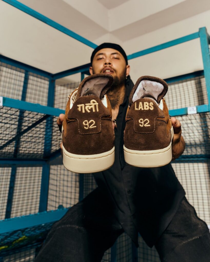 The back tab bears “92,” a direct nod to Raga’s East Delhi roots, grounding the sneaker in the community that shaped his voice. Its rugged construction draws inspiration from the lyric “muh se nikle Aandhi”, a metaphor for unstoppable energy and raw creative force, giving the design a visceral edge.